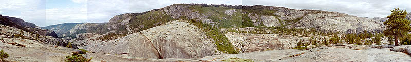 The canyon is a classic glacially-carved one, with immense granite walls rising over a thousand feet on either side. As we began hiking the canyon, all vegetation disappeared, and we were left in a stark, almost lunar landscape. Down the very center of this bizarre canyon ran Cherry Creek -- almost completely dry. We began to worry about our water supply further downstream.